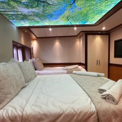 Entertainment: Stereo Music System, TV in Cabins and Saloon, Wi-fi (Cellular reception)